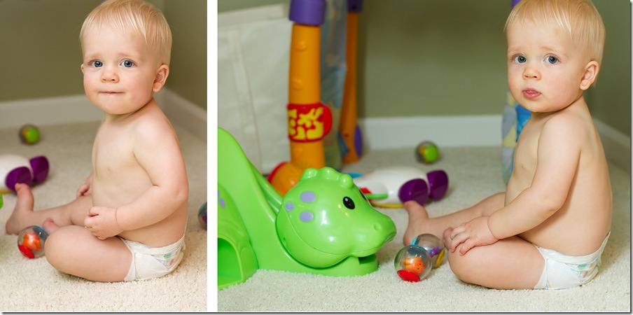 Because I MADE good lighting, by bouncing the light off of the wall. Which, admittedly gave Kaden a bit of a greenish tint, which I quickly tried to take care of in post processing. But, non-the-less, illuminated him nicely!